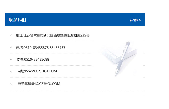 地址:常州市新北區友邦商務大廈1幢16、17層  電話:0519-85101652  傳真:0519-85112595  郵編:213022  網址:www_cz-jiayue_cn.qijingtaispa.com  郵箱:xiajifengaa@163.com